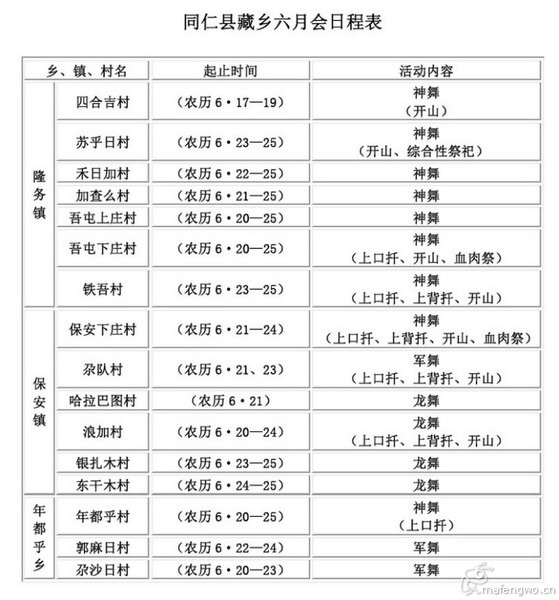而后,在隆务河流域的几十个藏族、土族村庄相继展开,各个村子的开始和结束日期是不一样的。