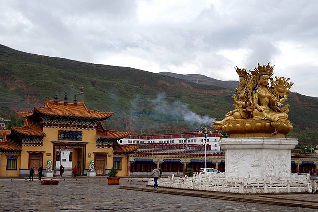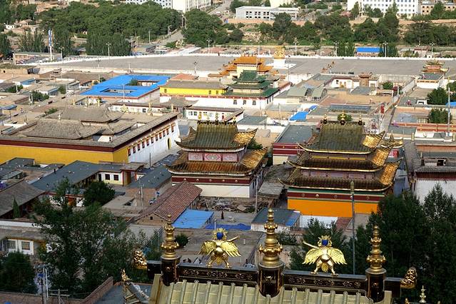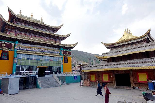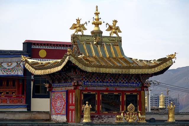 隆务寺虽然是藏传佛教大寺,因为跟汉地关系密切,大多数建筑都带有浓郁的汉地古建筑风格,飞檐斗拱,雕梁画栋。