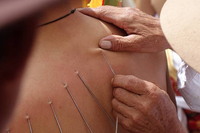 赤裸的背上被插上一根根钢针,旁人看的足以心惊肉跳。
