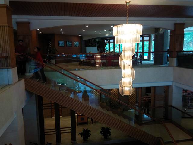 湖泉酒店很好找,导航、路标都有指示,在门口问了保安,B座在哪里以及车辆停放问题,车子我们就停在B座楼下,保安说他们都会看着的,园区有摄像头这些,不用担心的。前台办理入住后,拿着房卡到房间,毕竟是按五星标准要求的酒店,环境很好,整整洁洁的,服务员都很有礼貌,最爱他们的精油皂,返程的时候我都带走了。床睡着很舒服,第二天起来后没有感觉全身酸疼。早上,很能听见鸟叫,很自然。