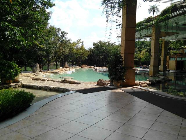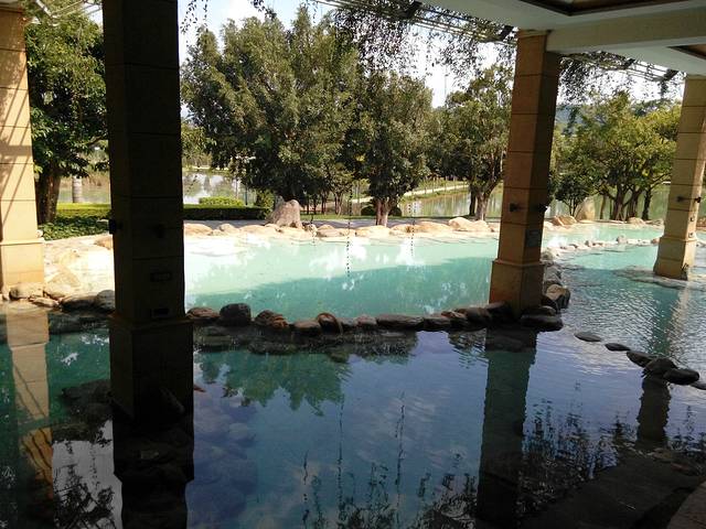 朋友对湖泉酒店还是比较了解的,她告诉我们泡温泉就早上的时间去。所以我们吃完早餐就穿着房间的浴袍去泡温泉了。太积极了,到的时候有些池子都还在放水的,看着干净的水刚刚进入池子,大家泡起来的时候更是放心、惬意了。湖泉酒店的温泉处于丛林环绕中,早晨可以听虫鸣鸟叫,晚上天气晴朗还能看见璀璨星空,一切扰乱于心的尘事都随着涓涓热浪流走,大自然才是真正的魔术师,草长莺飞这些见惯了的景物,在原生态的环境下,可以将人变得很简单,脑海中什么都不需要考虑。