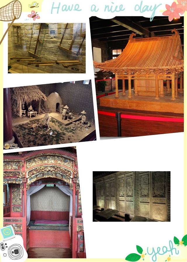 保国寺放得展品是各种建筑的模型,木工的工具,各种故事的传记,以及明朝的架子床也是当时的婚床。