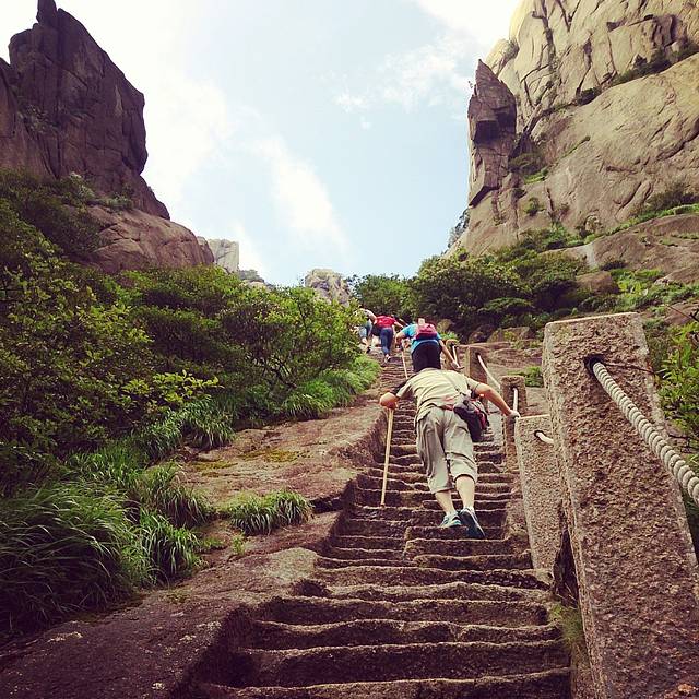 从9点开爬天都 一路走走歇歇(其实因为很多陡路太不好走 只得小心为之)