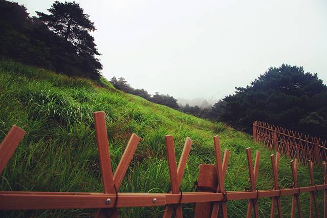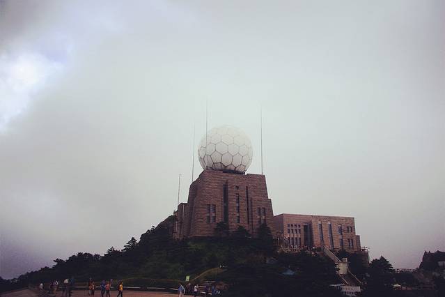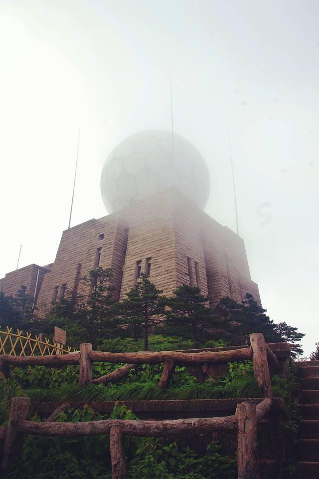 坐下休憩片刻 望着雾气笼罩的光明顶气象站 本想在光明顶看日落的计划也搁浅