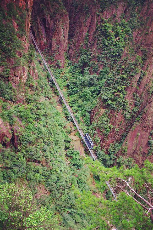 缆车下山的游客在迎客松这里便能坐缆车 走过便无回头路 只能一路步行下山 颇为辛苦