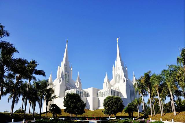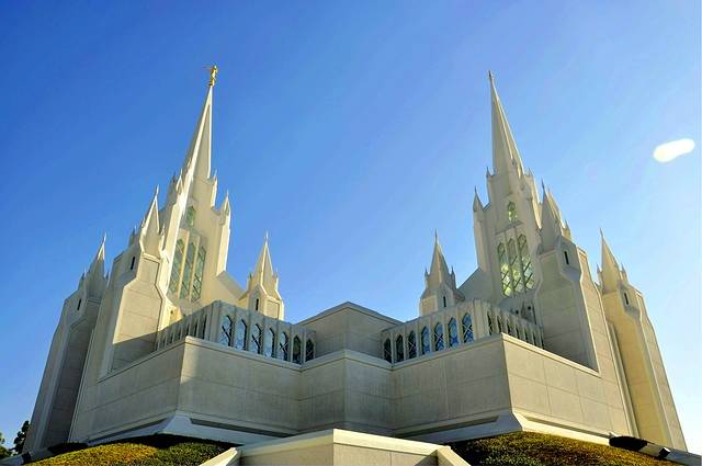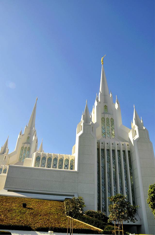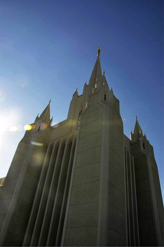 教堂就在5号公路边,典型的摩门教堂,或者应该是圣殿更确切一点。路上拿着IPAD看介绍片恶补background,说这样的temple的特点在于,如果说教堂是给教徒用的,那么圣殿就是上帝降临时显身之所,所以尤其神圣而建筑则极尽精美。这个temple也的确如此,神圣感仿佛是它与生俱来的,抬头仰望尖顶,丝毫不敢大声说话。