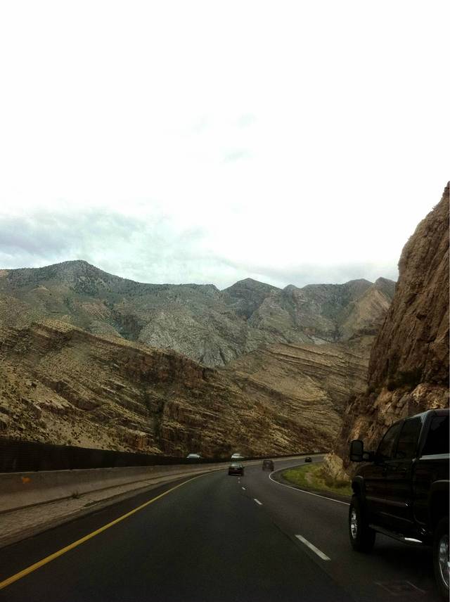去拉斯维加斯的一路都在睡觉- -bbb睁眼的时候就看到这样的景象了,这种大荒凉的色彩再加上不那么灿烂的天气,顿时弄得心情都阴沉了。而且犹他和内华达州的人民开车远没有加州人民那么彪悍,所以我们开得也不快,老有怎么路这么长的错觉。