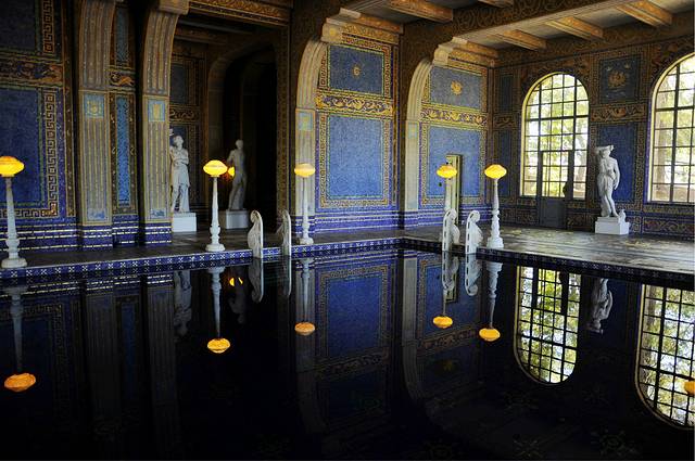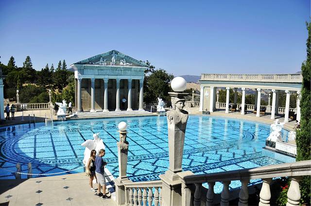 乘中巴盘山而上,才看到这座19世纪末的古堡,据说很久很久很久以前沿路能看到丛林里的各种野生动物还有路边的各种果树,但是我连一头鹿都木有看到- -bbb 看到城堡第一眼的感觉,是精致大过宏伟,各种风格mix,尽管城堡的主人曾经说它只是"family cattle ranch"。除了城堡里面各种富丽堂皇之外,两个swimming pool是看点。露天的Neptune Pool,基本上可以纵观整个ranch的view,而我个人更喜欢室内的Roman Pool,虽然没那么阳光,但是沉静而有神秘感。