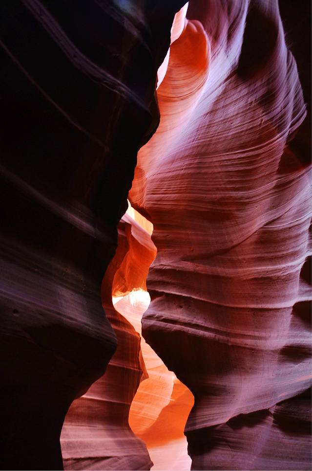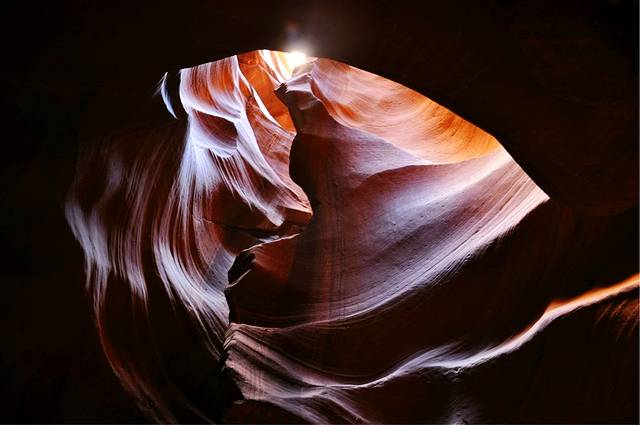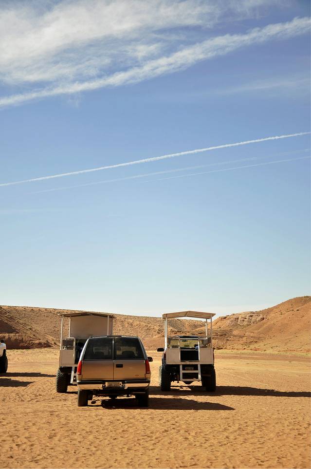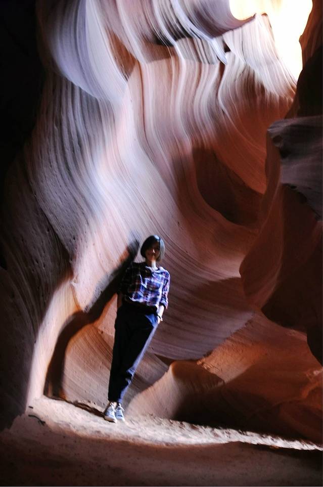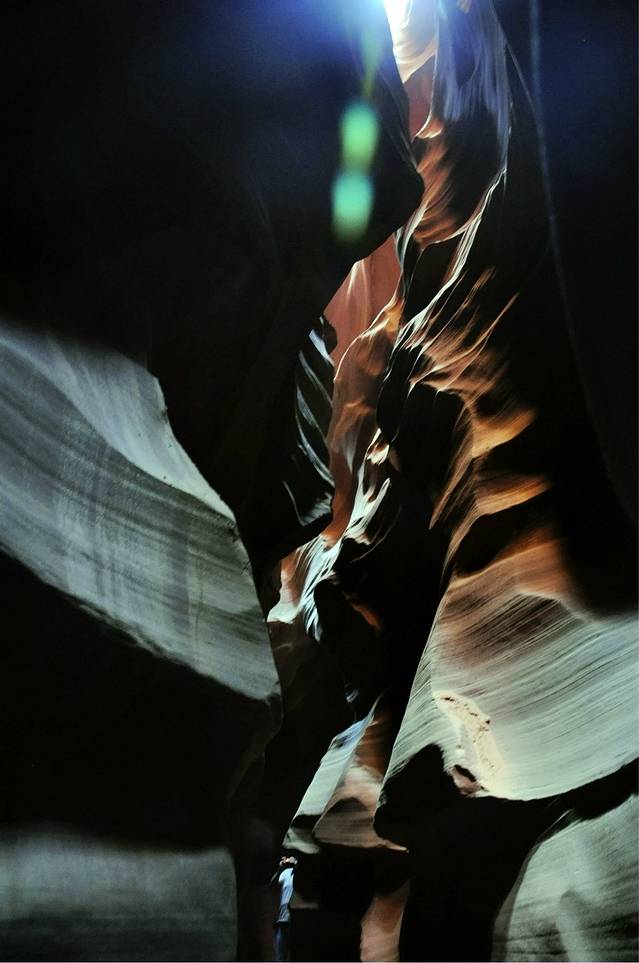 羚羊谷有分上羚羊谷和下羚羊谷,上羚羊谷是一定要印第安人带你进去的。到达之前开过长长的一段沙漠,这一路颠得我随时都在担心要从简陋的四轮篷车上翻下去- -bbb 在进谷之前,你是不会想象到这流水和风沙形成的岩洞里是另一个光影世界的。