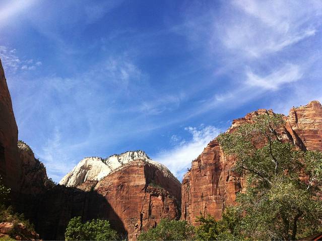 这个算是前一晚临时起意要去的,反正顺路,而且Kanab的房东也说不错。门票25刀。地貌可以看得出和之前去过的国家公园们很不一样,看guide的时候觉得是个hiking或者camping的好地方。基本上公园里面的设施什么的参照grand canyon,因为时间关系乘shuttle bus去几个著名的view point看了一下,选了很大众也很好走的一长一短两段小徒步了一下,在那种蓝天的背景下,怎样都应该是愉快的。沿途会看到在攀岩的人们,于是又在心里默默羡慕并佩服了一下。