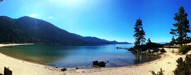 在旧金山的时候,还开车去了加州和内华达州交界的地方的Lake Tahoe(好像是翻译成太浩湖),北美最大的高山湖,大概海拔2km吧。从旧金山开车过去三个小时左右,先进到一大片national forest,然后那一抹太纯净的蓝就蓦地出现在眼前。乍一眼的感觉,其实跟泸沽湖有点像,安静且美。在那边呆了一天一夜,如果有时间,真想再多住些时候,早上沿湖跑步,上午可以骑行或者划船,下午找个地方发呆看书,傍晚的时候可以沙排,夕阳西下找个湖边的餐厅吃饭,晚上散个步看个星星。也罢,留些遗憾吧,好让我时常念着这里。