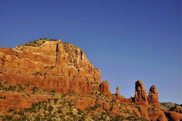 早上的飞机从Sedona去Phoenix,大概11点到,机场拿了车直奔Sedona。天气预报的温度差不多有摄氏40度,但是体感温度倒是还行,还没上海的酷暑难忍。这一路,风景和加州的大不相同,先是白色山崖壁上高耸的仙人掌,然后枯草成片,再然后是远远近近的红岩石。