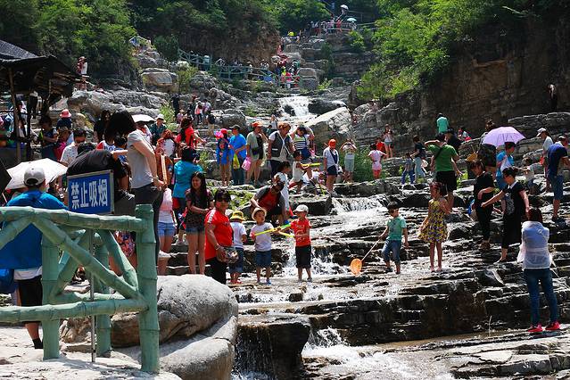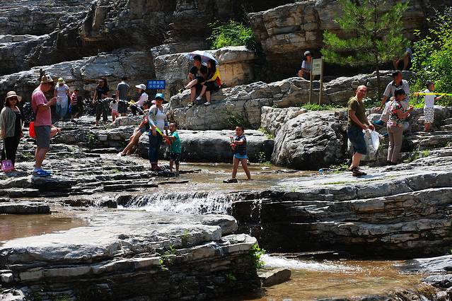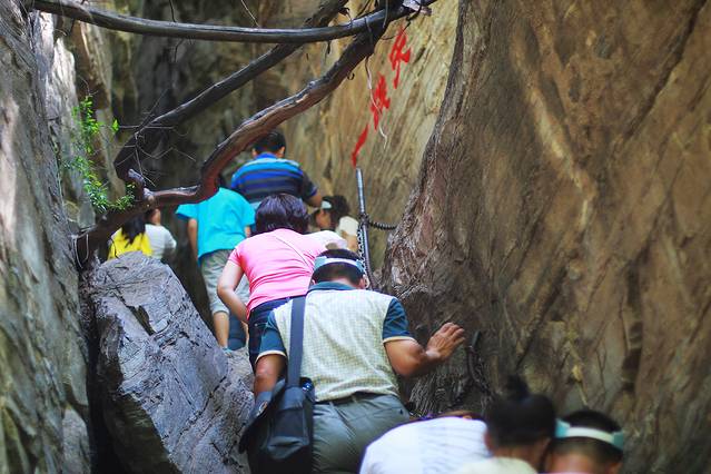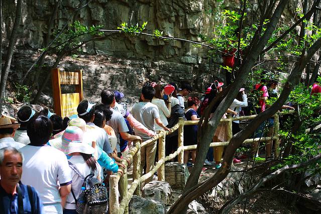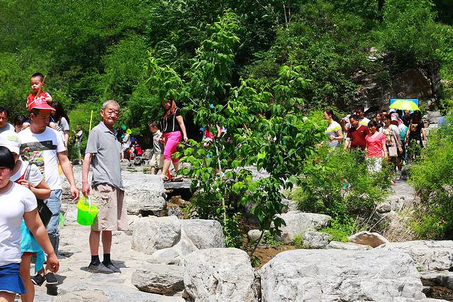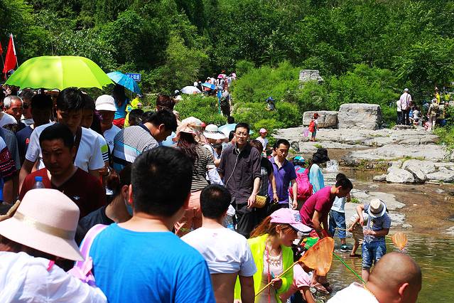 路人游人出奇地多,我和小伙伴们几乎都惊呆了,才9点多钟,去往一线天的溪边小路已经象庙会一样挤不动了。