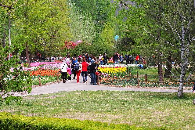 天气不错,都已经临近中午了,忽然心血来潮,决定去植物园看看,这个时候桃花已经基本谢去,适逢郁金香的盛开,正是春光如画的时节。