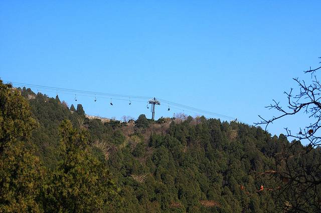 从平台向北远眺,登山览车上游人也不少,看来并不是每个人都喜欢自己爬山的。