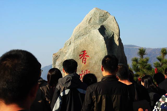 香炉峰上的游客比预想的要少很多,显然是因为红叶谢了的缘故。尽管如此,想要拍照留念的话还是需要排队抢位,不然就成了各种合影了。