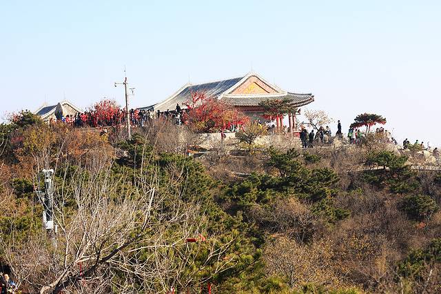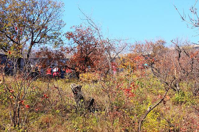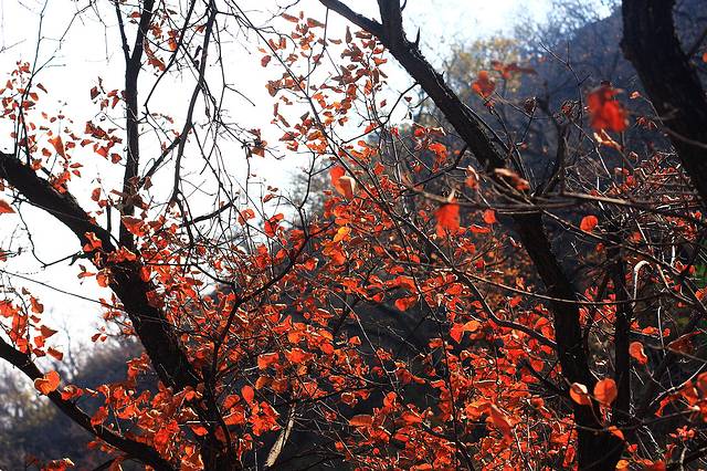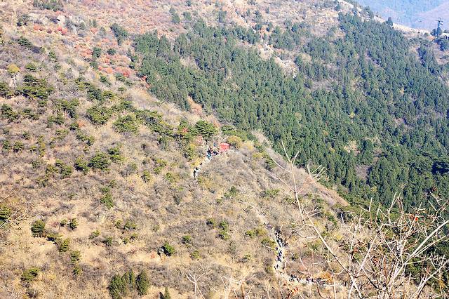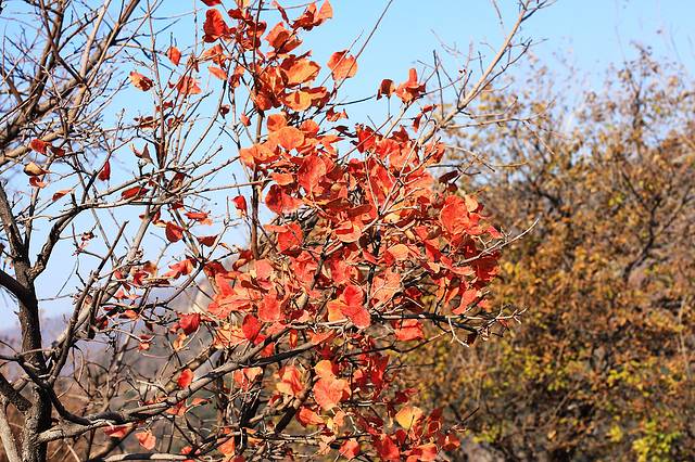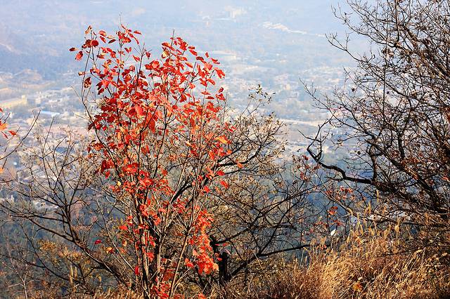 向山上望去,不知道是黄栌树少了还是叶子掉了,感觉红叶很少,稀稀拉拉的散落在山上,不能成林。