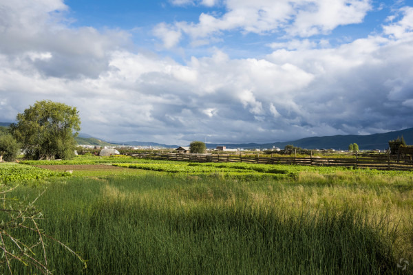 山顶上景色开阔,能俯瞰拉市海,心情舒畅啊。下山后还有一段田园风光,骑着马在田地间漫步,别有一番滋味。离开马场,直接前往下一个景点--上虎跳峡。