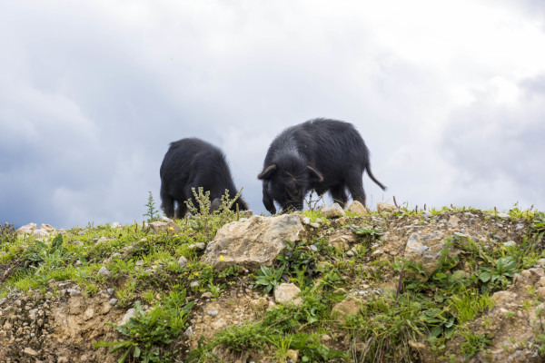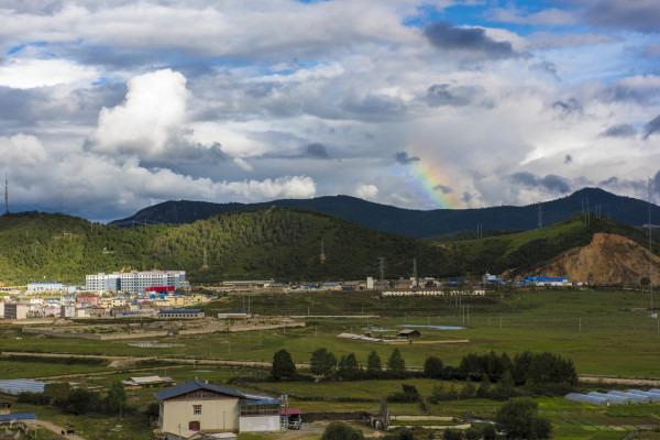 当地的村民非常热情好客,反而我们觉得打扰到这个小村落的宁静了,在他们的指引下来到一座小山坡上,那里风景绝佳,一路上有牛有羊还有猪,甚至在山上还有幸看到了彩虹,我这眼睛真是尖,彩虹稍纵即逝,还好被相机记录下了。