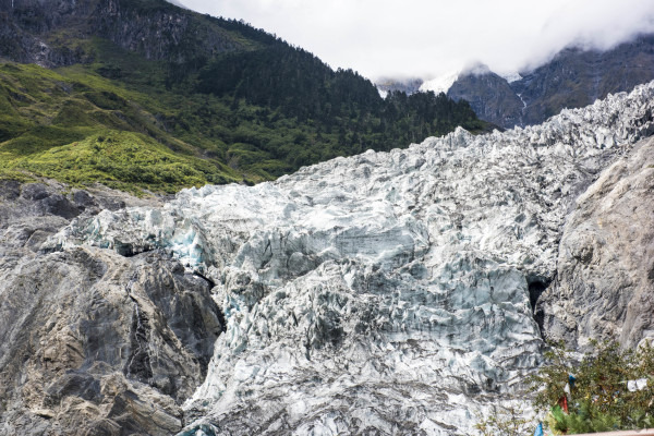 步行1小时可到达观景台,在最高的观景台我们也看到了所谓的明永冰川,这冰川在飞来寺就能看到它的上部,是从卡瓦格博直接下来的,我们现在能看到的的是它的下部。