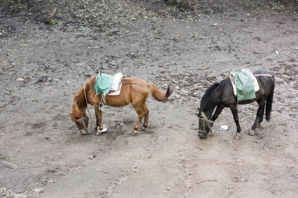来到山顶后,会有人兜售玉米给马吃,10元一盘,算啦,这马儿也挺累的,买就买吧。请托好你盘子,马儿真是超级饿啊,狼吞虎咽地就把一大盘玉米清光了,几乎连盘子都要吃下去。