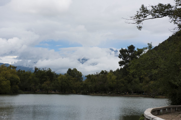 天气不是很给力,云南的云还真是超级多,倒影肯定看不到,玉龙雪山也是只露出一点点。公园挺大的,我走了一半就往回了,主要还是为了看玉龙雪山。出门后继续坐出租车去束河古镇。