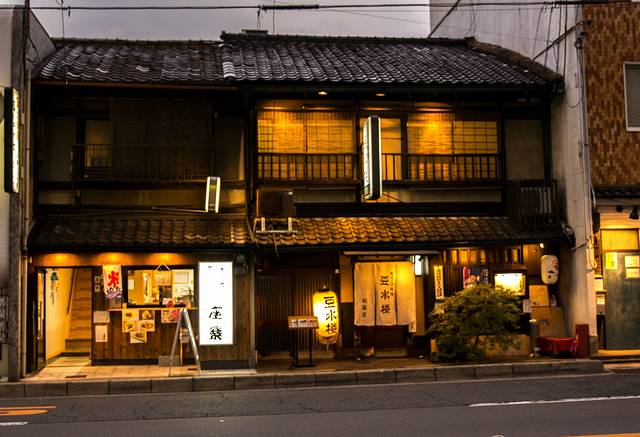 京都是个有着历史古韵的城市,高楼大厦在这里很难见到,夜幕降临。月光和灯光给这座城市笼罩上一层朦胧的色彩。