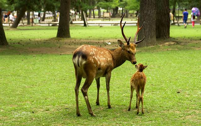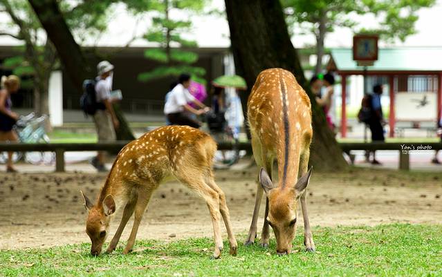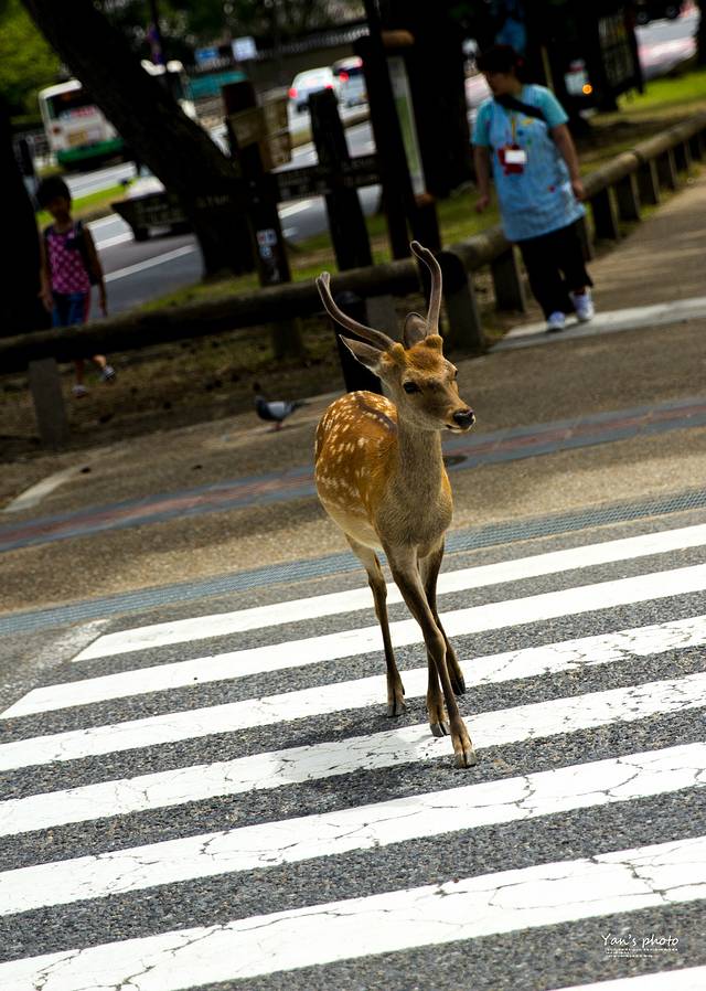 鹿已经成为奈良的代名词,全世界的人慕名而去。小鹿们在大街上、公园里行走,很是随意。游客和它们近距离的接触,很是有爱。