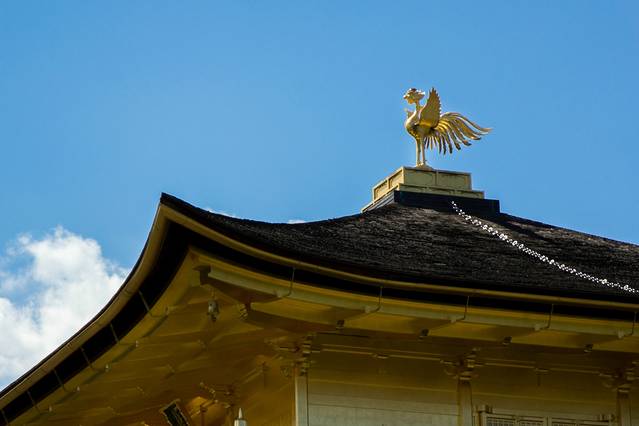 顶端屹立着一只凤凰,名副其实,贵气十足。在京都众多寺庙中最为高调,尤其在阳光照射下,金光闪动在水面上,异常耀眼。