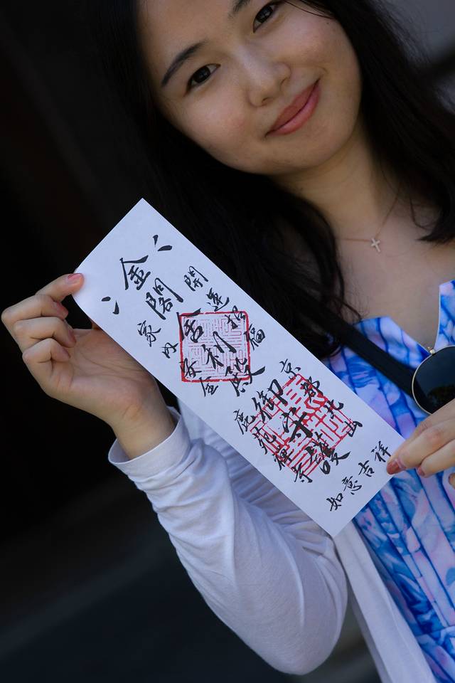 而我认为金阁寺最独特的地方便是她得门票,游客拿到的不是参观入场门票而是写有祝福话的纸符,极具收藏意义。