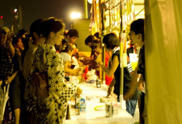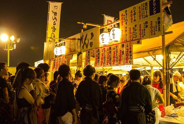 大阪淀川花火大会是大阪家喻户晓的全民盛典,每年都有数万烟火盛开在淀川的上空。穿着和服的青年男女们穿梭在小摊边,用纸网子网金鱼、或挑选琳琅满目的团扇。各种美味的小吃更是让人目不暇接。想要找到观赏烟花的好位置的话,最好提前两个小时前往。