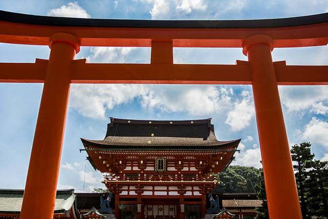 京都伏见稻荷大社,这是来京都必来的景点之一。整个神社色彩红得艳丽无比,千本鸟居和狐狸是最大的看点。