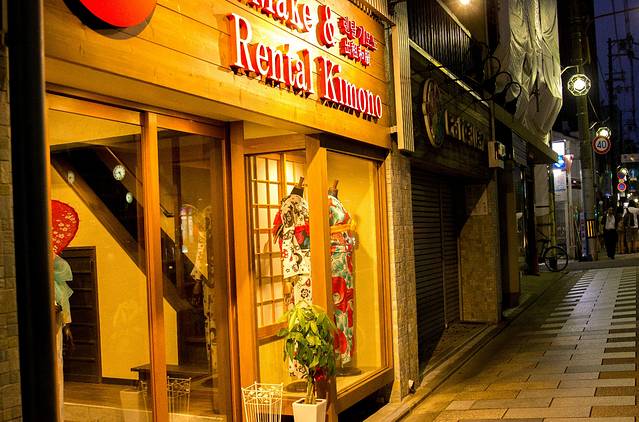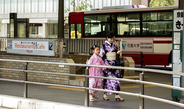 在京都,有很多租赁和服浴衣的店铺。世界各地的妙龄女子穿上和服,挽上发髻,踩上木屐,拎起一个和风的小布袋,笑意吟吟,顾盼生姿,宛若传统的日本女子。娇媚又不失端庄。