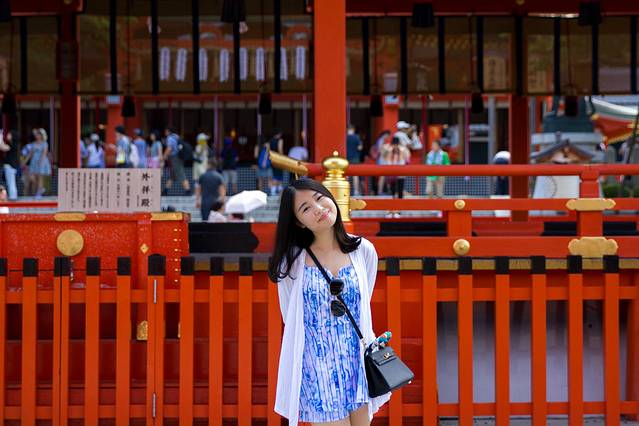 这是也是我最为期待的景点之一,橘红色的鸟居在阳光下真的超级醒目!鸟居延山路向上,不用急于拍照,因为越往上人就越少,好好欣赏一下美景,呼吸新鲜空气吧。经常见到有穿和服的妹子,毕竟爬山还是有点累的,那身行头实在不适合,尤其是这么热的天。