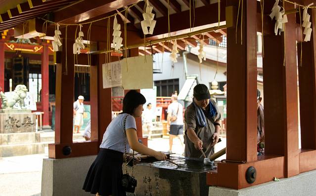 神社的很多地方都有这种泉水,人们用木舀子盛水洗手或者饮用。