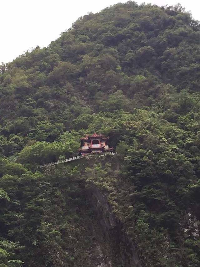 这是在山下拉近距照的,之字型的山路真正要爬上去可不是那么简单啊,山中有寺,寺中有人的