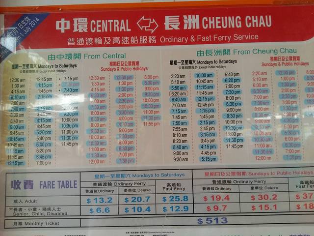 坐西铁线从南昌站转到香港站直接A出口出来,往中环5号码头坐船直接到长洲码头(坐高速快船:25.8港币/半小时到,普通船:13.2港币/50分钟左右),自已是第一次去,主要是有黄大叔全程带路,就省了很多做功课的时间啦!哈哈