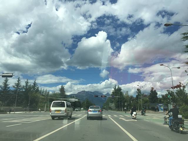 饭饱过后,我们自行打车前往束河。此处要说明下丽江的出租车,统一都不打表,单独报价,哪怕使用嘀嘀打车,人家也是接单另收费。从大研古镇南门到束河古镇大概7公里的路程,司机报价50,还到40成交。图上最远处的是玉龙雪山,特意拍了一张,再往前一段路左拐就进入束河古镇了。到束河古镇也可以公交,但到门口还还需要走很长一段路。