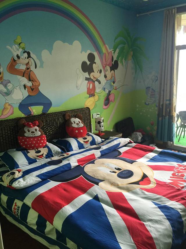 进入房间门,就看到满屋子的米奇,可乐看到太开心了。