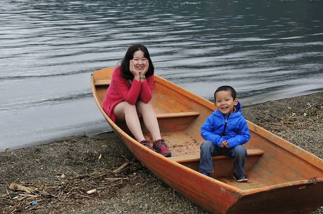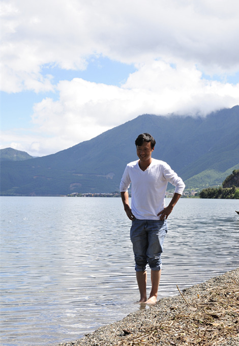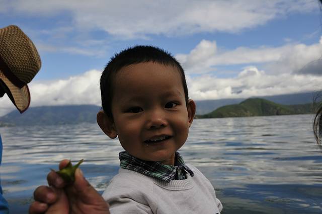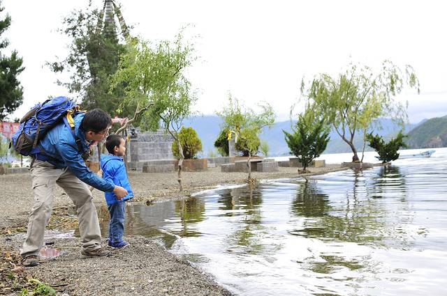 在客栈稍事休息了下,已经迫不及待来到湖边high起来。小朋友真的很容易满足,跟爸爸一起丢丢石子都是那么happy。爸爸应该玩得也很开心吧。