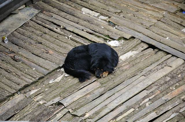 丽江真的如传说中一样,每家客栈至少有一只狗狗,真的是至少。这只小黑就给小朋友带来了很多欢乐。可乐对他是又爱又怕。