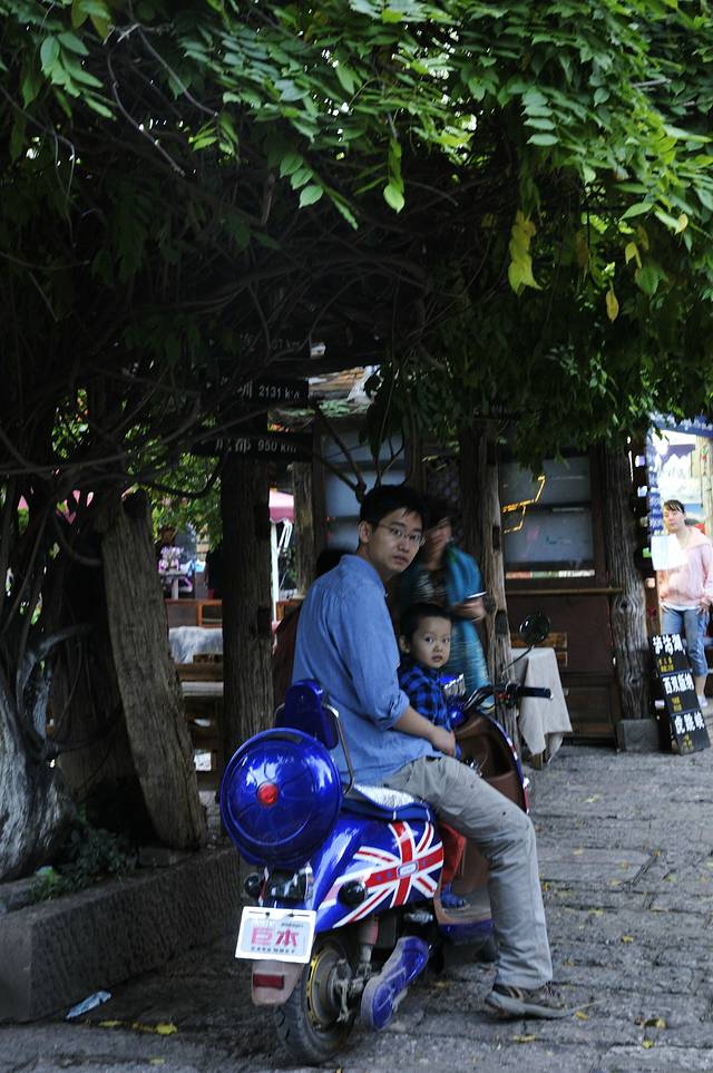 为了出行方便,我们在客栈旁边租了辆电瓶车,80元/天。我们大概也就骑了4个小时吧,还是蛮亏得。 在古城石头路上骑车,还挺累。我 束河古镇里很多是不允许车辆进入,道路封死的 。不过好在有这辆车,不然晚上溜达回去都不知道几点了。