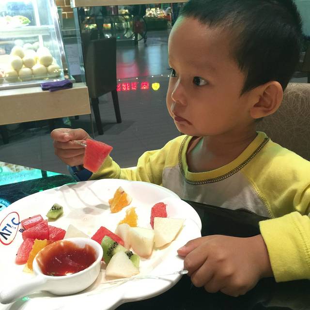 小朋友等飞机等着饿了,要求吃点东西,点了份水果沙拉吃的很happy。