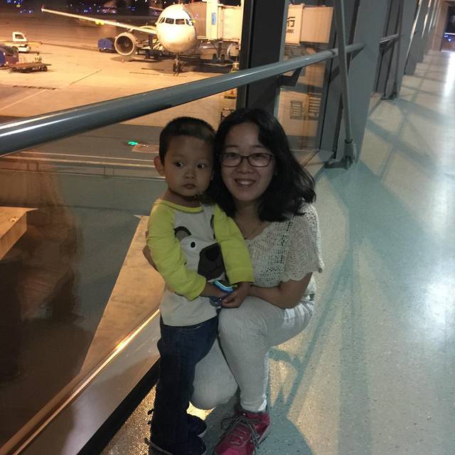 小朋友人生第一次坐飞机,必须要俗气的咔一张,虽然晚上光线不那么好。