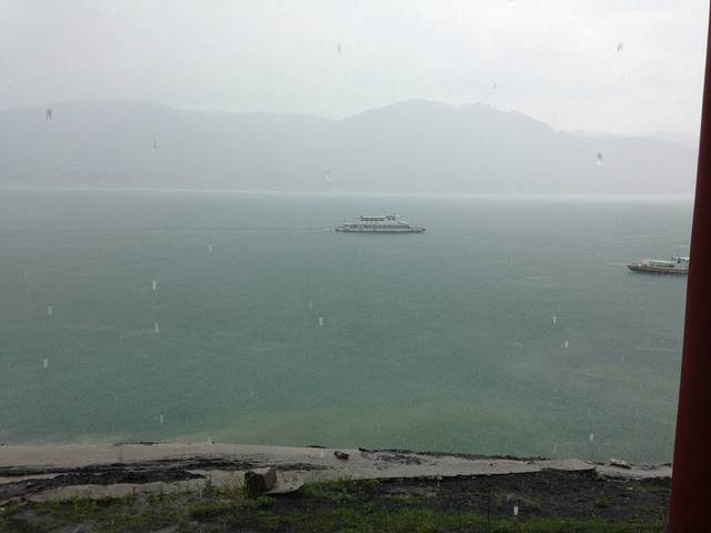 从溶洞出来,本打算拍几张照片就搭船返回,却不幸突然开始下雨。不过在此看到雨中游船,让我感觉到有种电影中悲凉的感觉。风雨大作~游船离开~恋人分离~ 哎╮(╯▽╰)╭