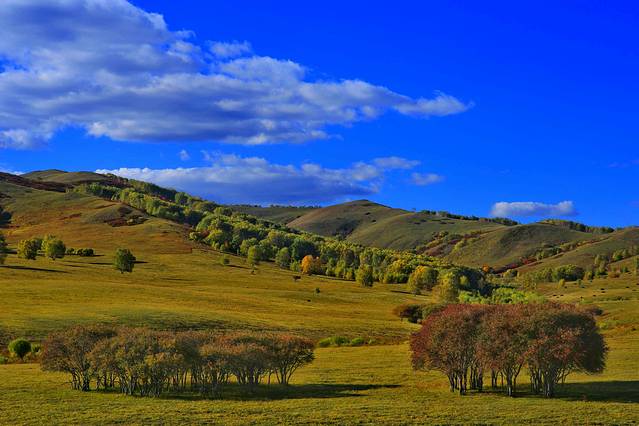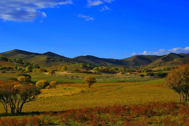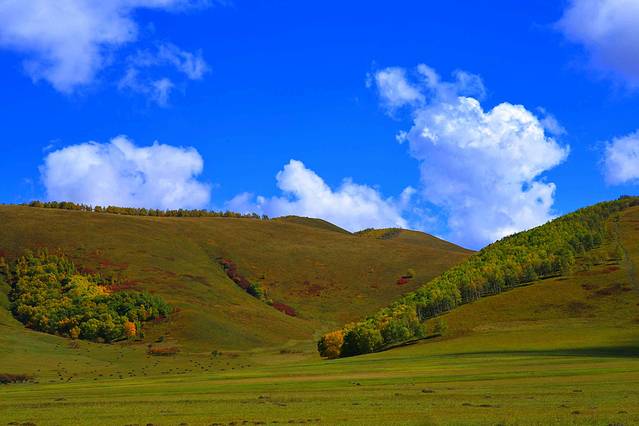 有一句话叫“坝上承包了整个秋季”,之前觉得太夸张,可是真的到了这里以后,发现这里真的太美了!秋季的坝上,红的黄的绿的,再加上牛羊马群,真的太美了!!!