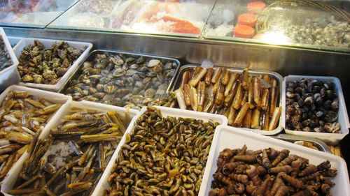 贝类的挑选上要注意选择那些张口露肉,肉质充盈丰满,有光泽,有弹性的,如果死去的贝类肉会向内凹陷。最后挑选龙虾和石斑以及鲍鱼的时候要注意,龙虾和头部和虾尾连接部分,如果有突出的透明的肉不好,石斑肉质灰暗,动也不动昏昏欲睡样的不好,目前三亚市面上的小鲍鱼口感与肉质均不美。