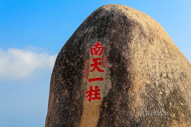 “南海一柱”的故事,相传很久以前,陵水县黎安一带海面上恶浪翻滚,渔民出海常常葬身海底。王母娘娘的两个仙女非常同情穷苦渔民,便悄悄离开南天门,到海上镇波压浪。一天,王母娘娘发现少了两位仙女,派雷公雷母下凡抓人。两位仙女不肯返回天宫紧抱在一起化座一座巍峨的双帆石,矗立海上为渔民引航。雷公大怒,把帆石炸为两截,一截在黎安附近的海上,一截飞到三亚“天涯海角”石崖旁,插地千尺,如巨柱挺立于沙滩上。 “南天一柱”景点曾经印在1980年版2元的人民币上,可见其影响深远,成为海南的代表性景观。 这些美丽的故事,相传许久了。今天,人们期盼安宁幸福的愿望终于实现了,人们不必借助这些神化传说表达自己的心意,直接可以尽情享受社会发展带来的幸福生活。 “天涯海角”的海滩上,还有一块横卧的礁石不能不让人留意。与“鹿回头”的山盟碑对应,海滩上有一块巨大的礁石,上面书写着“海誓碑”。 到这里我才恍然明白,山盟为始,海誓为终,山上山下,海天海地,钟情应是如此对应、如此和谐。 静坐海边,遥望碧海蓝天,我在想:这里真的是天之涯,海之角么?其实天哪有涯,海哪有角,海何时候才能枯,石又多久才能烂。这些祝愿,永远是人们对生活的美好追求和无限奢望罢了,于爱的执着也好,于事业的狂热也好,都不过是在并不幽静的水边空钓一场的游戏,其实哪时来的鱼呀!!!