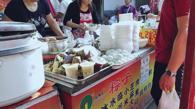 吃早饭的人那是相当的多啊,看的我们眼花缭乱的,济南的油条炸的相当好啊,整整齐齐的,金黄金黄的,最重要的还有油条是论斤买的,一根油条差不多和1.3-1.5元左右,可惜我和小伙伴都不能吃啊。