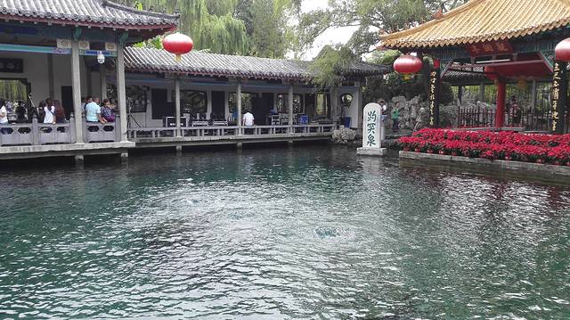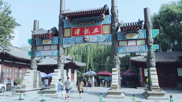 喂饱了肚子,首站理所当然的就是济南最有名的趵突泉啦,离的很近就1公里,走路去很方便随便去欣赏一些济南的风景。沿路经过了五龙潭,看到了5根龙头柱子,没有喷泉,果断在门口拍个到此一游,撤。